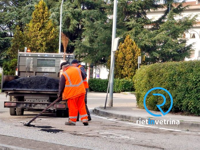 Sono in corso di chiusura le buche in via Sandro Pertini a Campoloniano (nella foto) segnalate su Rietinvetrina nella giornata di martedì 17 febbraio all’interno della nostra rubrica SEI TU IL REPORTER (LEGGI). La richiesta dei cittadini sul nostro giornale online è stata subito presa in carico ed evasa.
