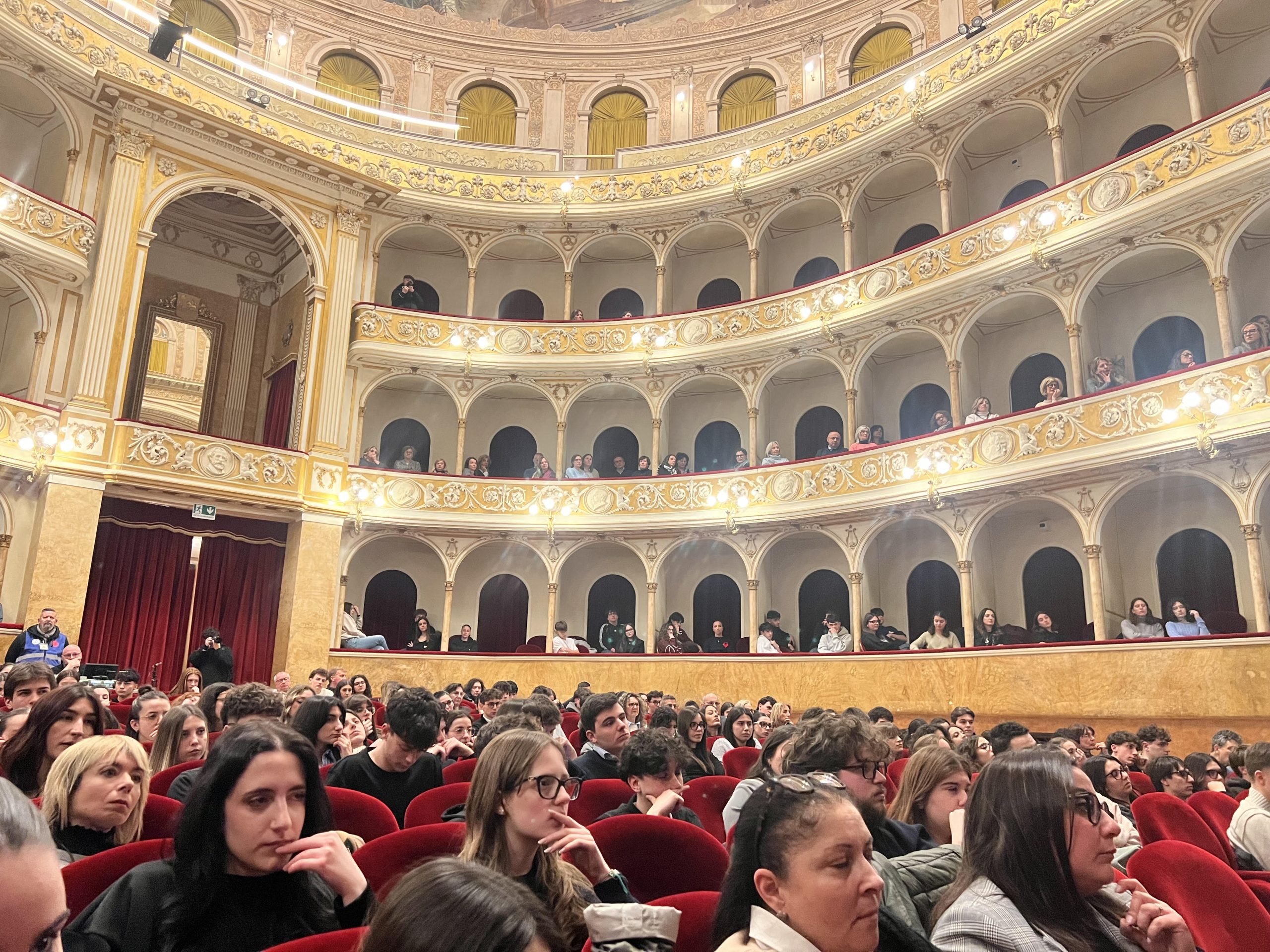 Stimolato dalle domande argomentate dei ragazzi, Crepet ha scosso il teatro con parole chiare che arrivavano dritte al cuore, con una conversazione decostruita e diretta. I giovani hanno bisogno di essere visti, hanno necessità di avere quei “no” che aiutano a crescere, ha detto. L’amore genitoriale per loro non deve essere confuso con una dimensione di pianificazione e di sicurezza che alla fine ingabbia. Ogni scelta autonoma, fatta soprattutto in gioventù, rafforza invece l’autostima e la consapevolezza di sé, delle proprie potenzialità ma anche dei propri limiti nella realtà. Così gli sbagli possono essere delle occasioni di approfondimento e di scarto. Esattamente come sono le vite dei personaggi della grande letteratura che si studia a scuola, spesso citata nelle domande come un appiglio. La narrativa e la poesia, ma anche la storia e la filosofia, agiscono come uno specchio e un archivio esemplare delle esperienze umane, avvicinando i giovani alla complessità della vita, delle relazioni e dei destini. E così capire meglio cosa siano la passione, il libero arbitrio, la scelta di mettere a tacere il cellulare uscendo dai conformismi, aiuta i ragazzi a riappropriarsi della dimensione umana e della propria viva esperienza. Crepet ha incitato i giovani a liberarsi, a essere più creativi, più capaci di fare, immaginando per sé stessi alternative alla realtà abituale che gli adulti prospettano loro con tante garanzie. Solo così – ha spiegato Crepet con tanti esempi concreti – quel giovane, pur soffrendo, alla fine è più felice di un altro che ha consumato una giovinezza pianificata e senza conquiste proprie. Certamente la libertà inizia davvero con l’autonomia economica, ma senza una lucida consapevolezza di sé in relazione con gli altri e nell’evoluzione potenziale di ciascuno nel suo “farsi da sé”, la libertà non può esprimersi appieno. Non c’è tecnologia o solitudine prescelta e anestetizzante che garantisca felicità e libertà. L’incontro è stato una grande lezione per tutti, anche di speranza: affinché gli adulti non smettano di imparare ricordandosi di essere stati giovani e di aver cercato la loro libertà anche per tentativi. E che essere buoni genitori non significa aumentare l’iperprotezione a scuola e nella vita, perché siamo tutti unici anche nello sbagliare. Per questo la giovinezza è un’età sperimentale. Ines Millesimi