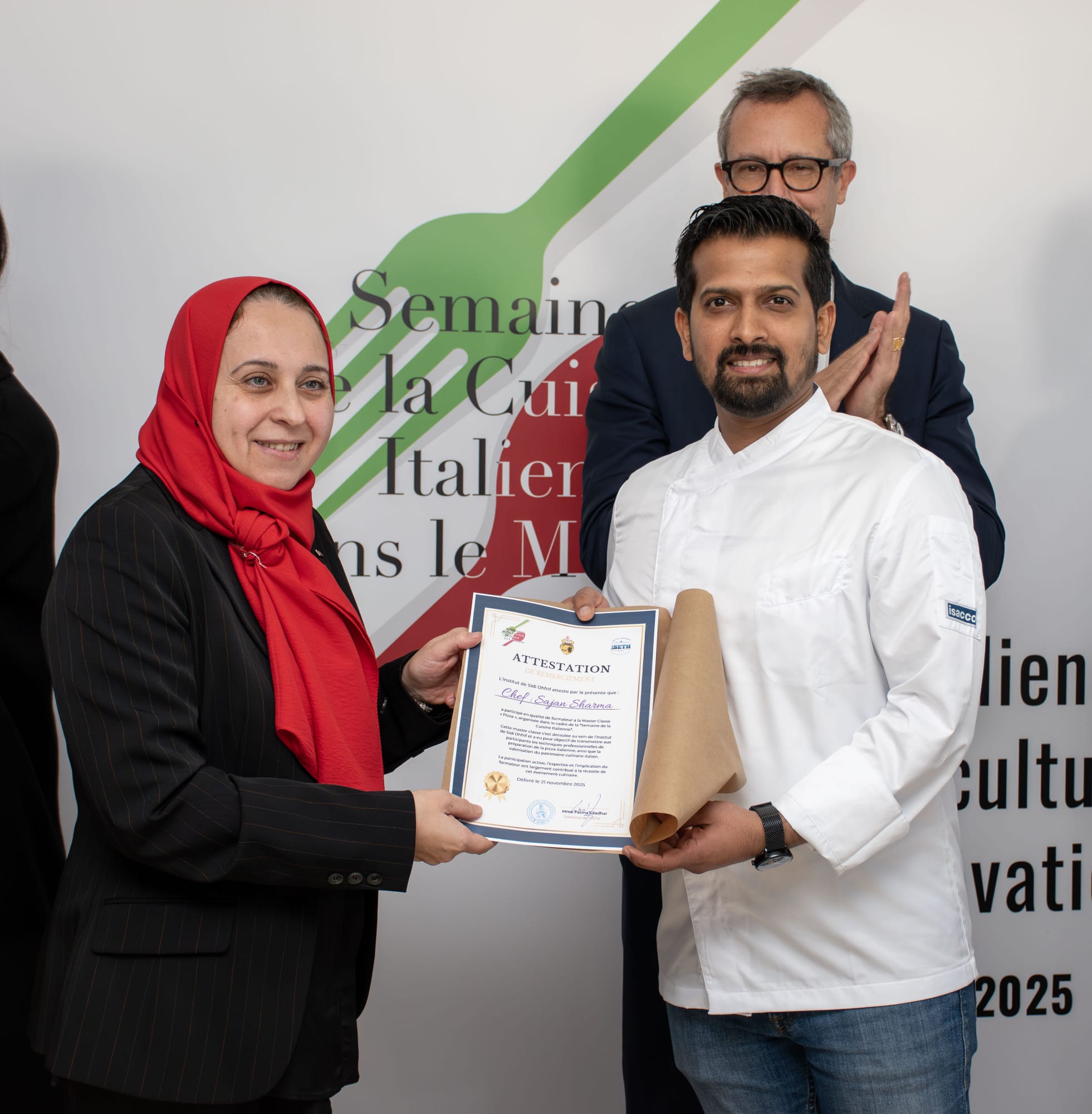 Dal 17 al 21 novembre 2025 il pasticcere brand ambassador Sajan Sharma è stato a Tunisi (Tunisia) per esportare il know how della famiglia Fiorentini all’estero ed insegnare la realizzazione dei buonissimi panettoni made in Italy. Un progetto nato in collaborazione con l’Ambasciata Italiana a Tunisi e Agenzia ICE. Sajan è cresciuto a Contigliano e può vantare una lunga esperienza affianco del maestro della pasticceria italiana, Iginio Massari, per ben nove anni. Ha studiato alla Scuola di Gualtiero Marchesi uscendo quale Miglior Studente dell’Accademia. Nel 2022 riceve il Premio Miglior Lievitista Giovane Italiano. Da tre mesi ha messo a disposizione della famiglia Fiorentini le sue conoscenze per una collaborazione che porta il brand reatino ancora uno scalino più in alto nell’Olimpo dei lievitati e della pasticceria italiana. Nella settimana di incontri sono state fornite le informazioni utili sulle qualità organolettiche degli ingredienti utilizzati per la produzione dei panettoni e le tecniche di realizzazione. Oltre al panettone classico italiano è stato studiato un panettone per la popolazione tunisina, realizzato con frutta secca: pistacchio tunisino, datteri tunisini e mandorle.