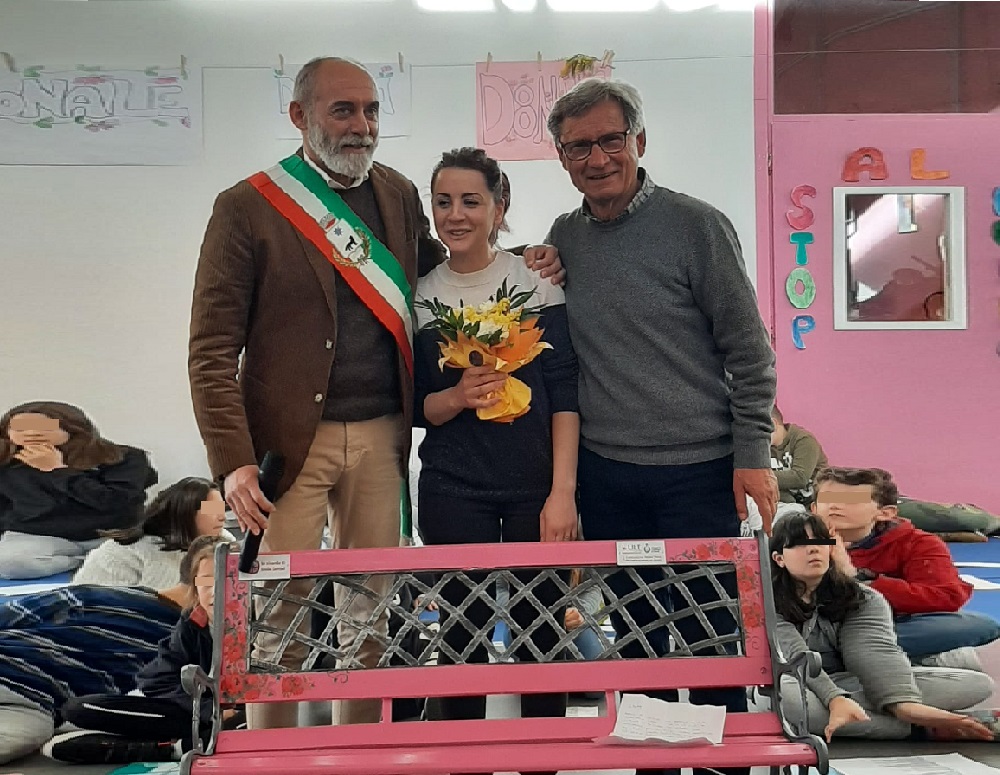 La panchina rosa è stata portata al centro dell’atrio, quindi è stata scoperta rendendo visibili la targa della LILT e quella che ricorda la professoressa Settimi. Successivamente ha preso la parola il presidente Zepponi che, salutato il Sindaco e tutti i presenti, ha constatata con soddisfazione bellezza e funzionalità del nuovo edificio scolastico, quindi si è soffermato in modo approfondito sul significato della panchina rosa quale simbolo della “prevenzione” femminile e maschile.