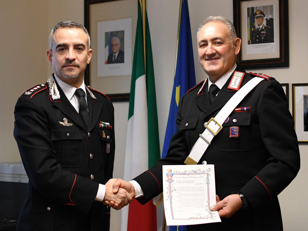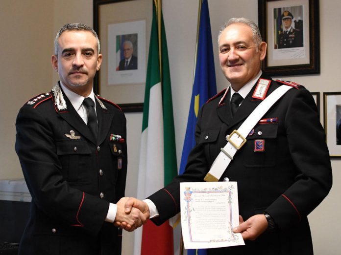 In segno di apprezzamento per la professionalità, il senso del dovere e la dedizione dimostrati nel corso dell’intera carriera, il Comandante Provinciale dei Carabinieri di Rieti, Colonnello Valerio Marra, ha ricevuto l’Appuntato D’Angeli, consegnandogli una pergamena a testimonianza della stima e della gratitudine dell’Istituzione.