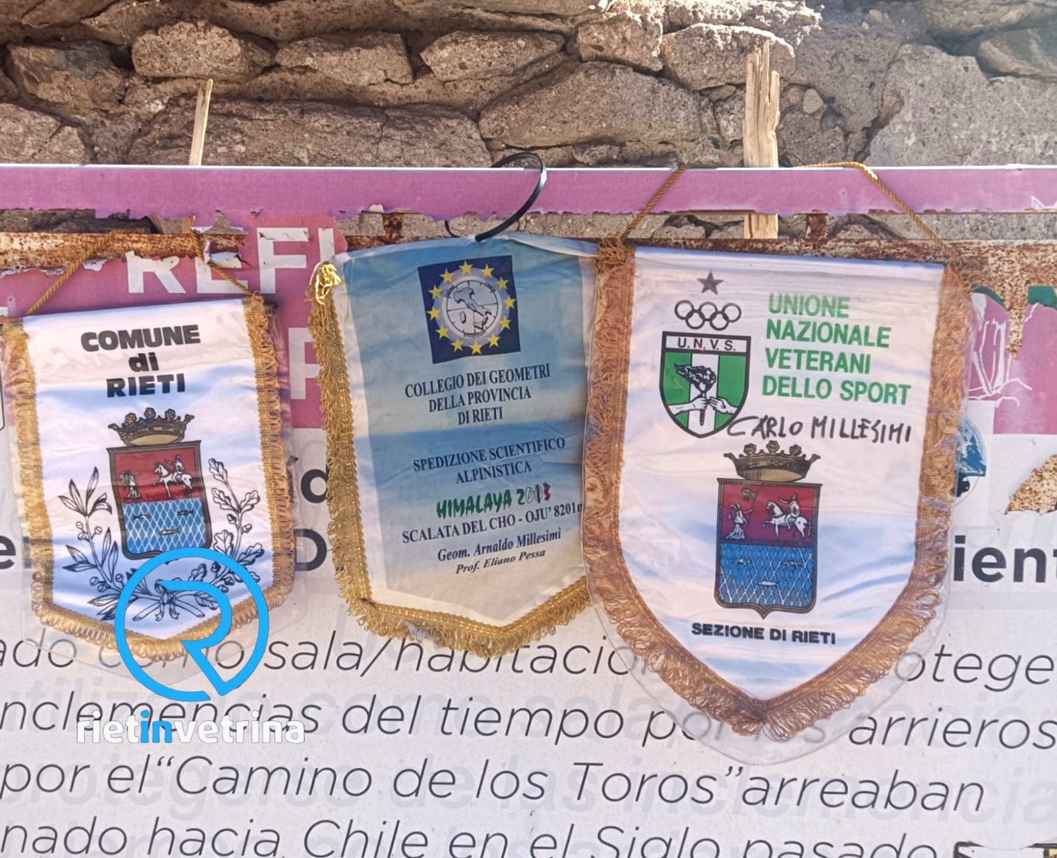 Missione compiuta, l’impresa è servita. Martedi 17 marzo l’alpinista reatino, Arnaldo Millesimi (80 anni), insieme ai compagni di missione argentini, ha scalato e risolto il mistero della Vetta Citta’ di Rieti di 6.250 metri s.l.m. Un traguardo che ha in sé dello straordinario, considerando anche l’età del nostro Arnaldo, pioniere dell’alpinismo reatino, baluardo di una scuola fatta di passione, impegno, sacrificio, dedizione e sogni. Ed il sogno oggi è tangibile, si è tramutato in realtà, rimanendo nella storia di Rieti. Nell’occasione Millesimi ha tracciato il percorso per giungere alla vetta, sulla quale ha posto i tre gagliardetti che vedete nella foto sotto: Collegio Provinciale Geometri e Geometri Laureati di Rieti, Veterani dello Sport, e Comune di Rieti.