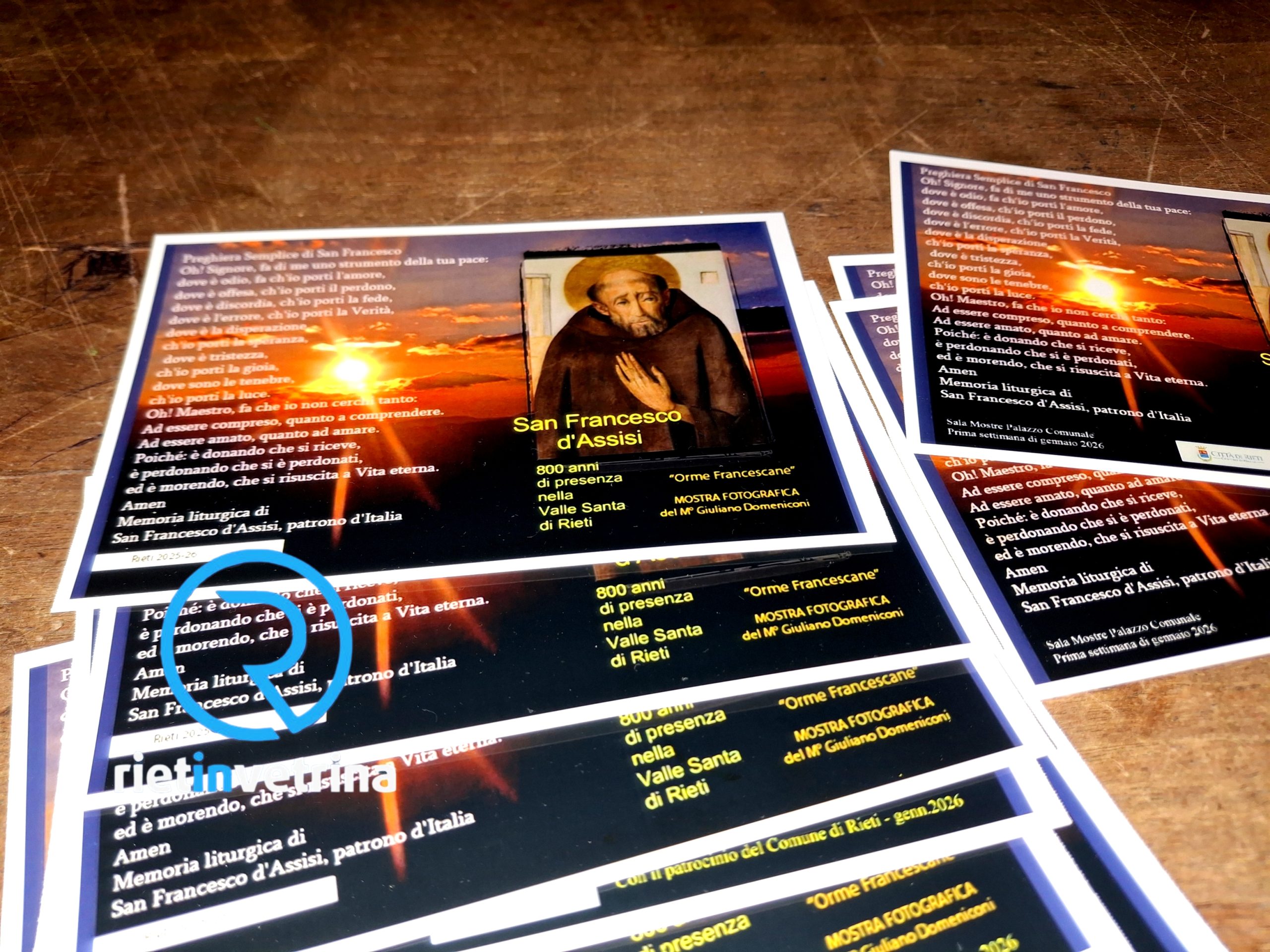 Lunedi 5 e martedì 6 gennaio (orario 10 – 13 e 16 – 19) sono gli ultimi due giorni per gustarsi gli oltre 200 scatti fotografici del reatino Giuliano Domeniconi. Nella Sala Mostre sotto i portici del Comune di Rieti, potrai vivere un percorso emozionale nel quale, attraverso le foto, vivrai in prima persona ciò che ha vissuto il Santo. La mostra, dal titolo “Orme Francescane”, è un silenzioso ed assorto viaggio nella Santa Valle Reatina, seguendo virtualmente il passo veloce e silenzioso di frate Francesco che si sposta da una zona ad un’altra di Rieti. L’evento ha il Patrocinio del Comune di Rieti. ORARI APERTURA MOSTRA: 10 – 13 / 16 – 19.![]()