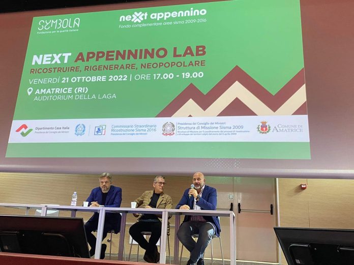 Presso l’Auditorium della Laga è stato presentato “Next Appennino Lab” (finanziato dal Fondo complementare al Pnrr); programma promosso dalla Fondazione Symbola finalizzato al rilancio delle Regioni del Centro Italia colpite dai terremoti del 2009 e del 2016.Lo scopo è quello di sensibilizzare l’opinione pubblica sui temi che la riguardano e coinvolgere tutti i soggetti interessati, in primis le aziende, a elaborare progetti strutturali per la ripartenza sociale, lavorativa, lo sviluppo economico delle comunità che vogliono ripartire.
