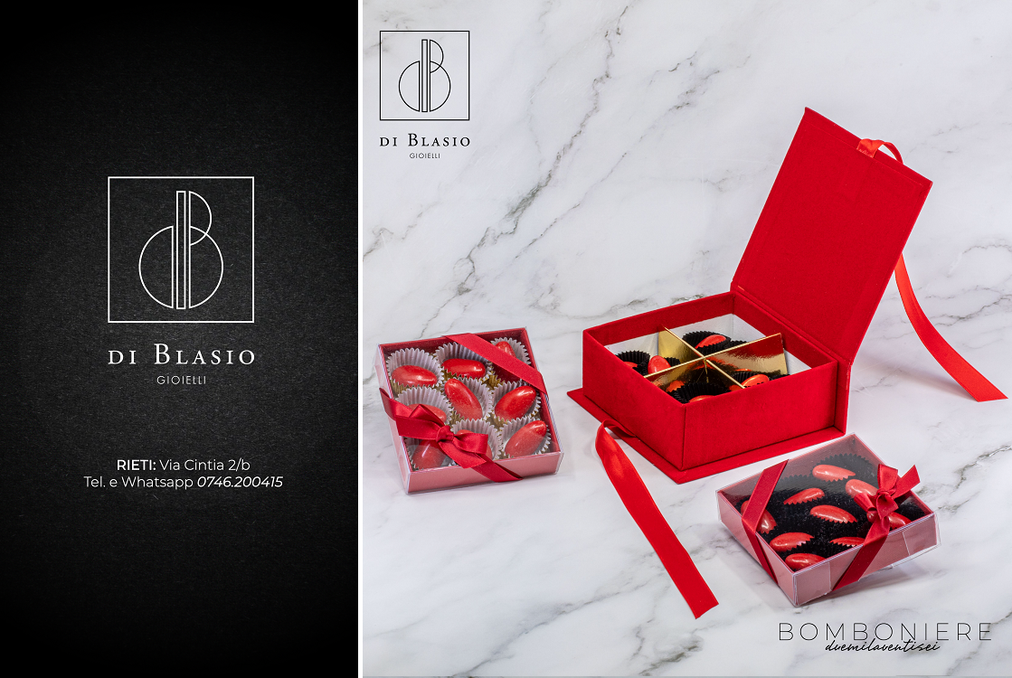 Di Blasio Gioielli realizza bomboniere esclusive realizzate con materiali di alta qualità e curate in ogni minimo dettaglio. Scatole rivestite in velluto, nastri in raso pregiato, confetti selezionati: ogni elemento è pensato per trasformare un semplice dono in un ricordo raffinato ed elegante. Le possibilità di personalizzazione sono infinite. Dai sacchetti in tessuto con ricamo personalizzato alle combinazioni di colori, materiali e confezioni, tutto viene progettato su misura per rendere unico il tuo evento. Per battesimi, comunioni, anniversari e matrimoni, ogni bomboniera diventa così un piccolo gesto d’amore, pensato per lasciare un ricordo prezioso nelle mani e nel cuore dei tuoi ospiti. Di Blasio Gioielli ti aspetta in via Cintia, 2/B per creare insieme la soluzione perfetta per la tua cerimonia. WhatsApp e telefono 0746 200415.